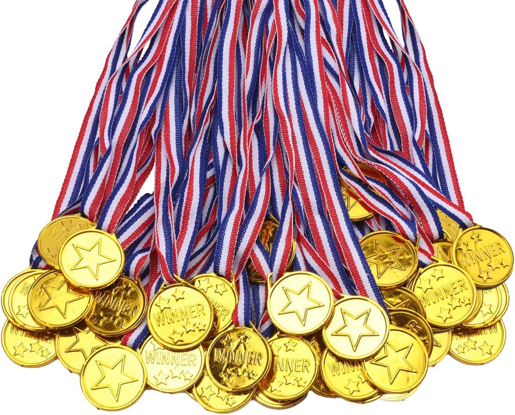 100 Pieces Gold Medals for Kids Medals for Awards Plastic Winner Award Medals for Sports, Competition, Talent Show, Spelling Bee Birthday Party Favors Gifts